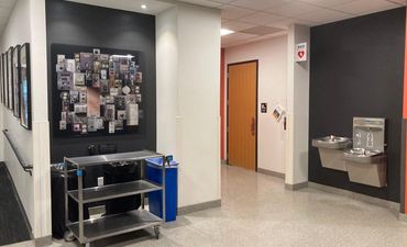 A gender neutral/family restroom is across from other restrooms on first floor.